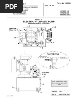 Hydraulic pump operations manual. Parts list form no. Hydraulic pump air or electric power source. Great to use when portability is needed.
